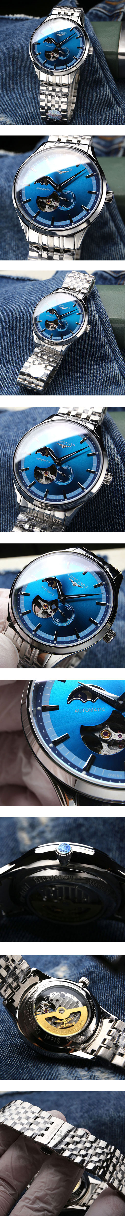 文字盤:ブルー文字盤、5時時刻秒針、9時位置ムーンフェイズ表示
