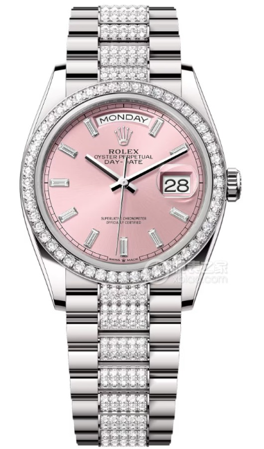 ロレックスは、その華やかな外見に隠れた技術力にも注目すべきです。このモデルには、ロレックス自社製造の超高性能ムーブメントが搭載されており、日付と曜日を完璧に表示します。特に、文字盤の周囲に配置された曜日表示は、瞬時に認識できるデイトジャストの象徴です。