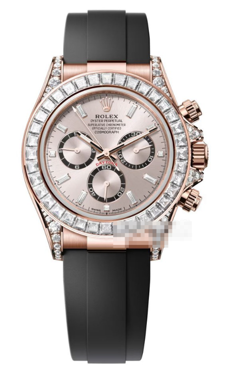 まず、そのデザインは、レジャーシーンにおける「上質なエレガンス」とは何かを教えてくれます。18ctエバーローズゴールドのケースとブレスレットは、太陽光のような温かみのある輝きを放ち、決して主張が強すぎません。文字盤にはロレックス独自のレインボーセッティングが施されたサファイアが散りばめられ、光を受けるたびに繊細な色彩のハーモニーを奏でます。さらに、セラミック製のブラックとローズゴールドのバイカラー・ベゼルは、スポーティーでありながら洗練された雰囲気を醸し出しています。つまり、この時計はTシャツにジーンズというカジュアルな装いにも、ポロシャツにチノパンといったスマートカジュールなスタイルにも、見事に調和するのです。