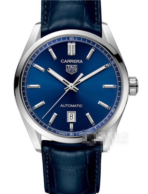 1960年代に自動車レースの熱気と共に誕生したカレラの名を冠するこのモデルは、過剰な装飾を排した、驚くほどクリーンでバランスの取れたダイヤルが最大の特徴です。深みのあるサンレイ仕上げのブルー文字盤は、光の角度で表情を変え、時に紺碧のように濃く、時に晴れ渡る空のように明るく輝きます。ロードスターの歴史を感じさせるシンプルな針とインデックス、そして3時位置の日付表示。これらすべてが、39mmのスチールケースと上質なブルーカーフレザーストラップの中に、完璧な調和で収まっています。