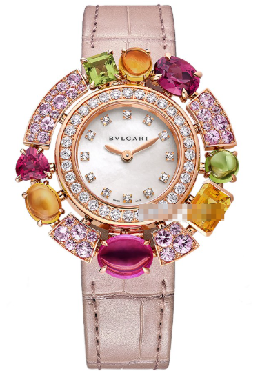 高級ジュエリーと時計工房の技術が交わる瞬間、それはまさに「腕に咲く一輪の花」と言えるでしょう。BVLGARIの「103713」スーパーコピー時計は、そんな比喩がふさわしい一品です。輝くダイヤモンドとカラーフルなサファイアが、繊細な花弁のようにケースとブレスレットを飾り、時を刻むたびに微かな光の揺らぎを放ちます。これは単なる時計ではなく、身に着ける者の品格と輝きを静かに引き立てる、動くジュエリーなのです。