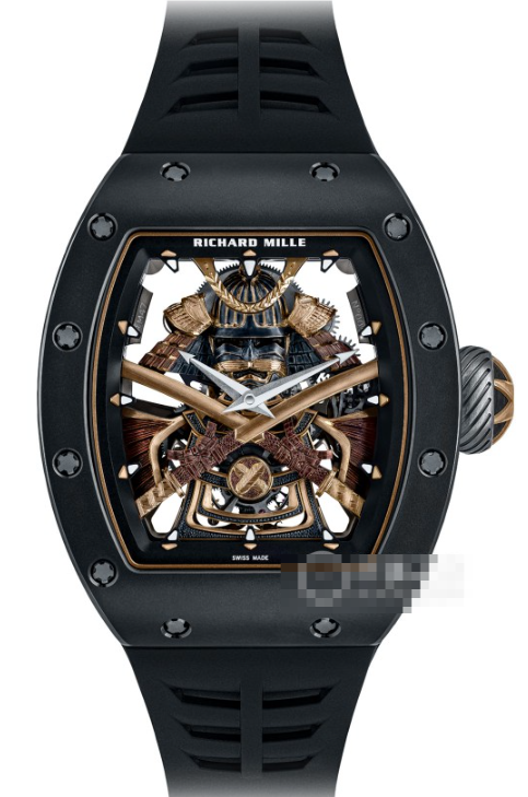 搭載ムーブメントは手巻きトゥールビヨンのキャリバーRM47。武士の鎧のために特別にコンパクト化された設計で、地板とブリッジには航空宇宙産業でも使用される5級チタンを採用しています。可変慣性モーメント型のテンワ、高速回転香箱箱による約72時間のパワーリザーブなど、リシャール・ミルの最先端技術が凝縮されています。